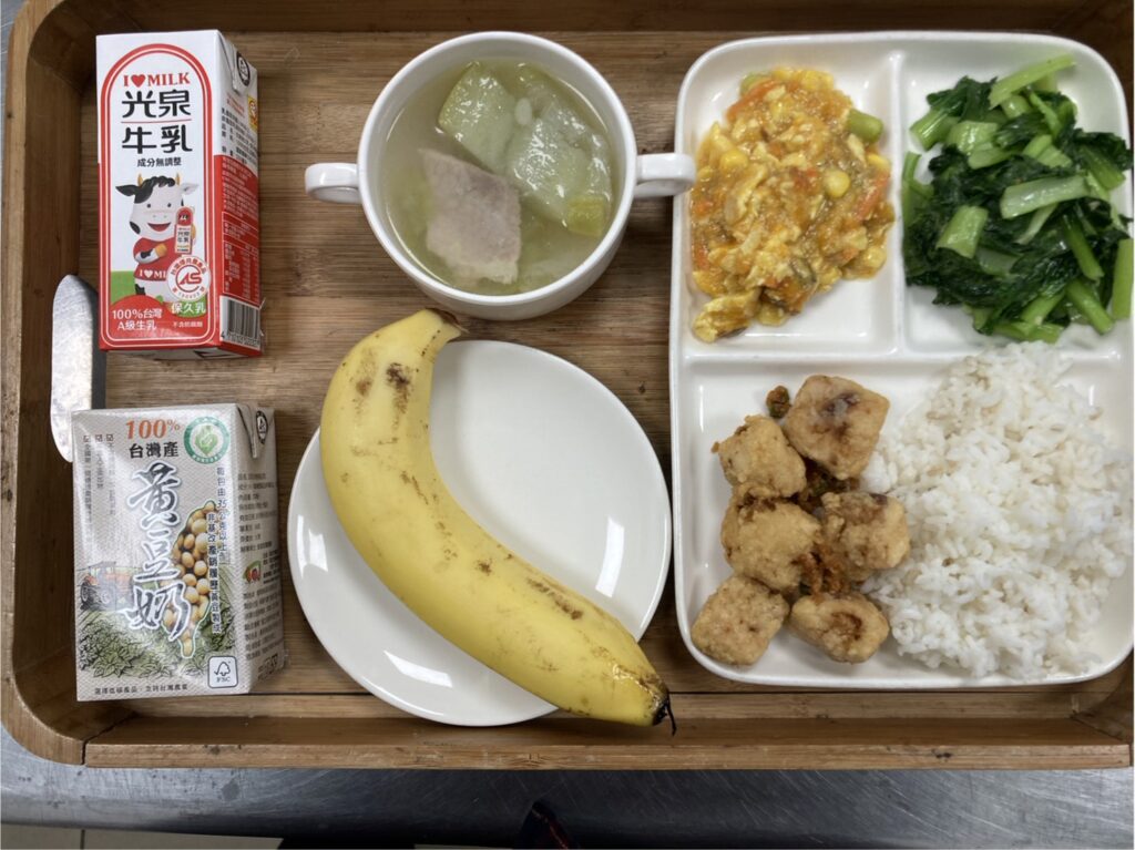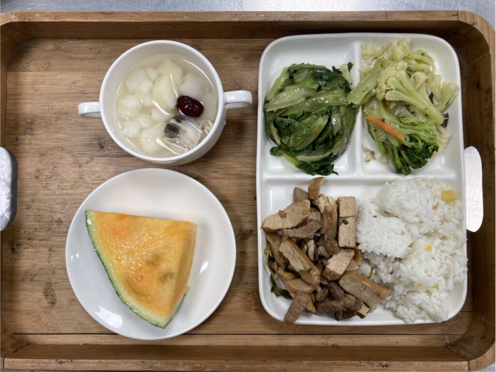 6/10(三)原定蔥酥A菜,因近日天氣導致A菜品質不佳,故而調整為福山萵苣,菜名異動為蔥酥福山萵苣,造成不便敬請見諒。