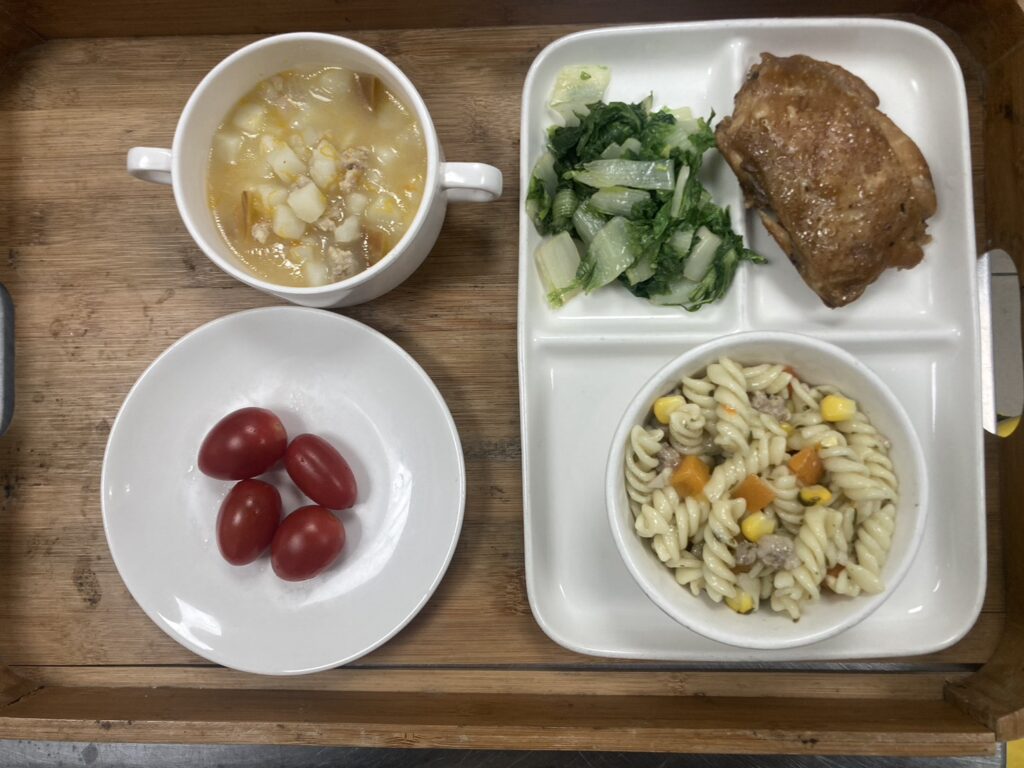青醬義大利麵(特餐).香料雞排.有機荷葉白菜.南瓜濃湯.小番茄